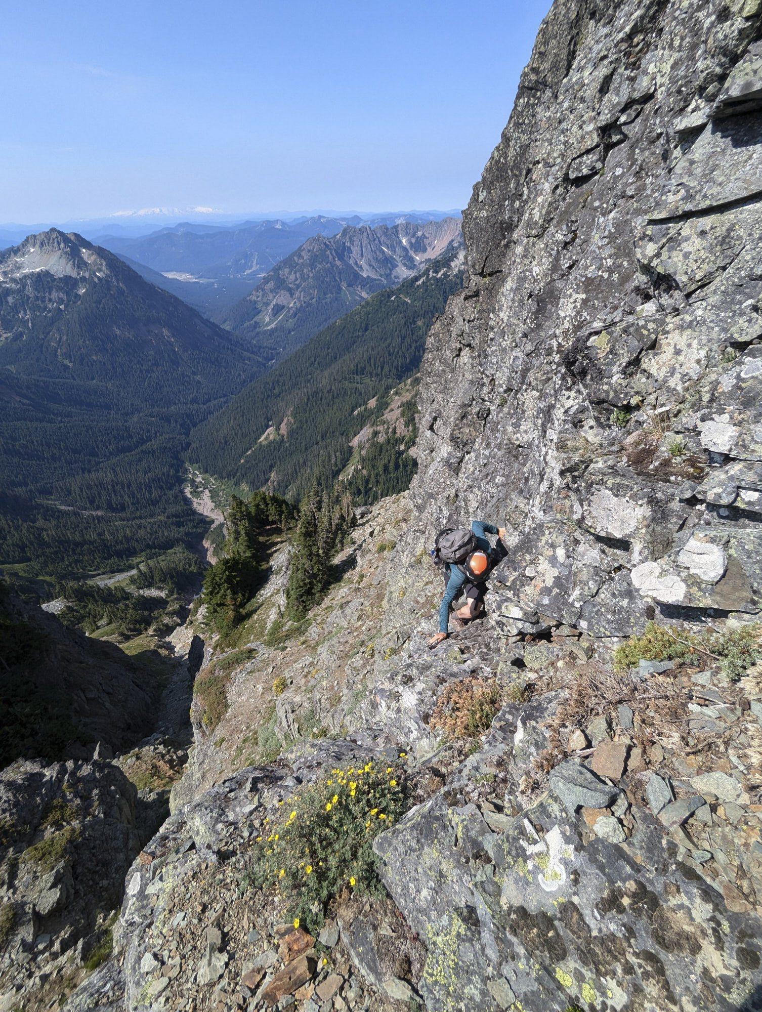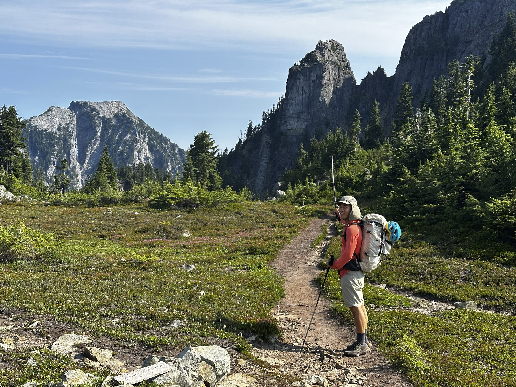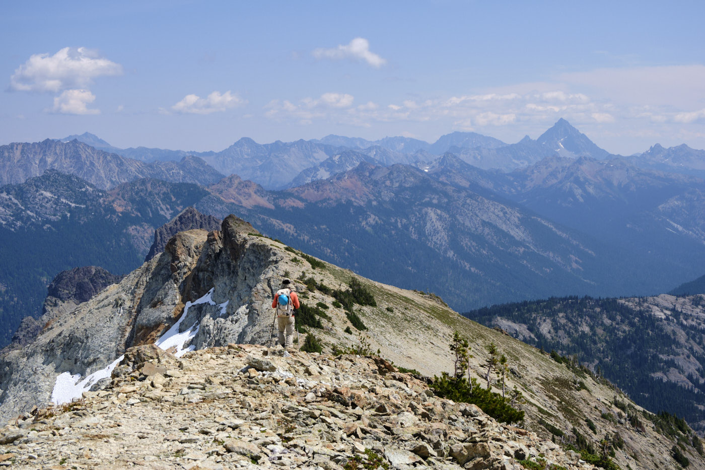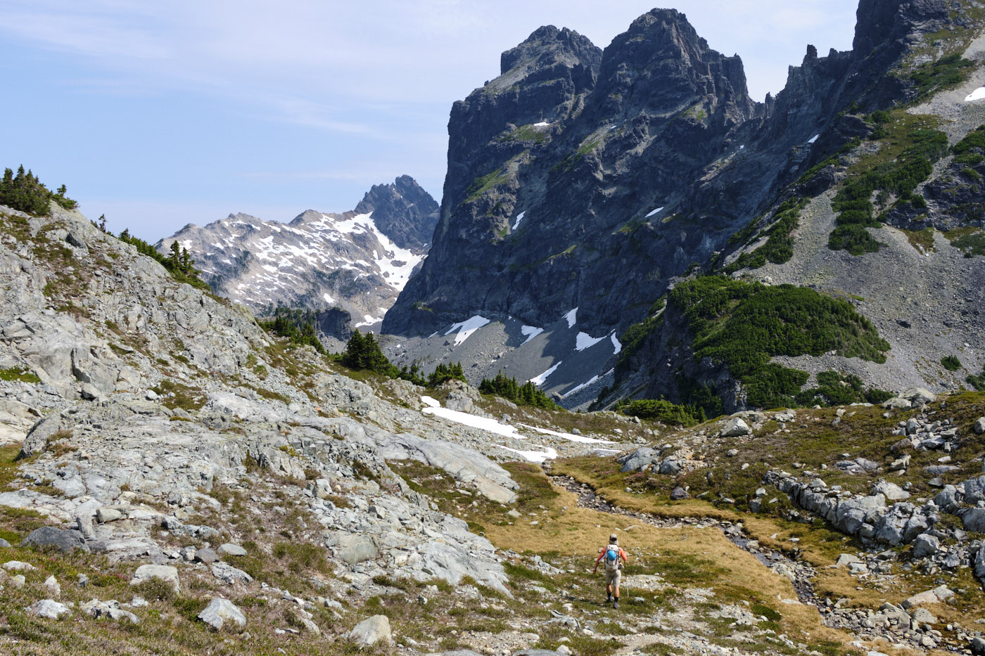 Hiking down Mount Daniel, with Mount Stuart prominent in the background