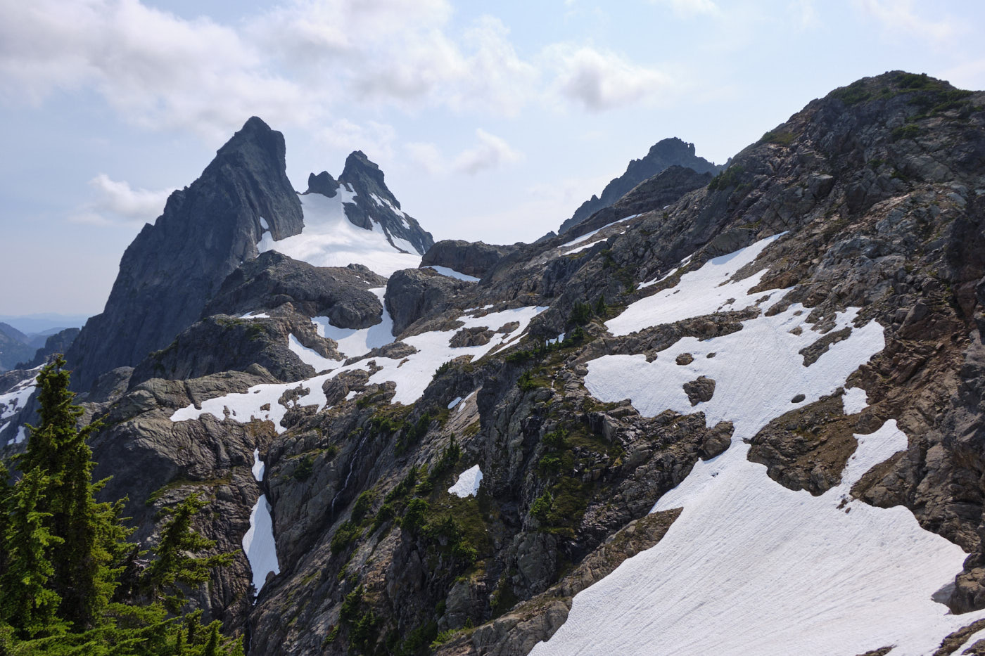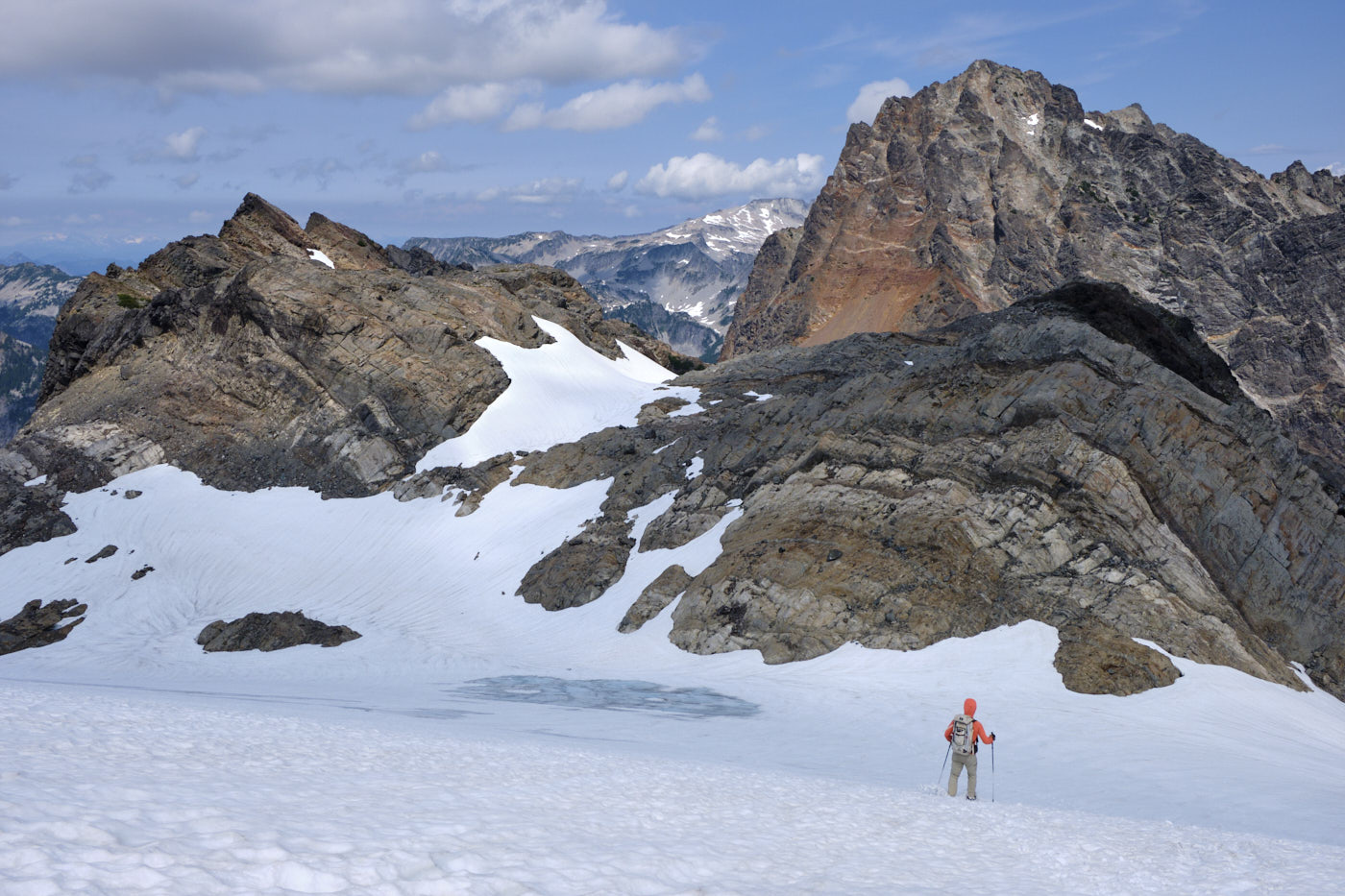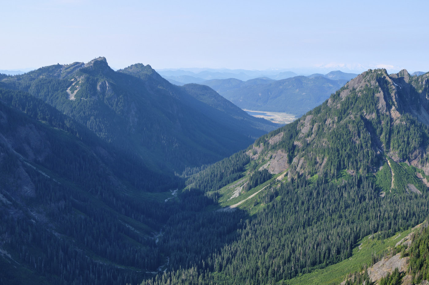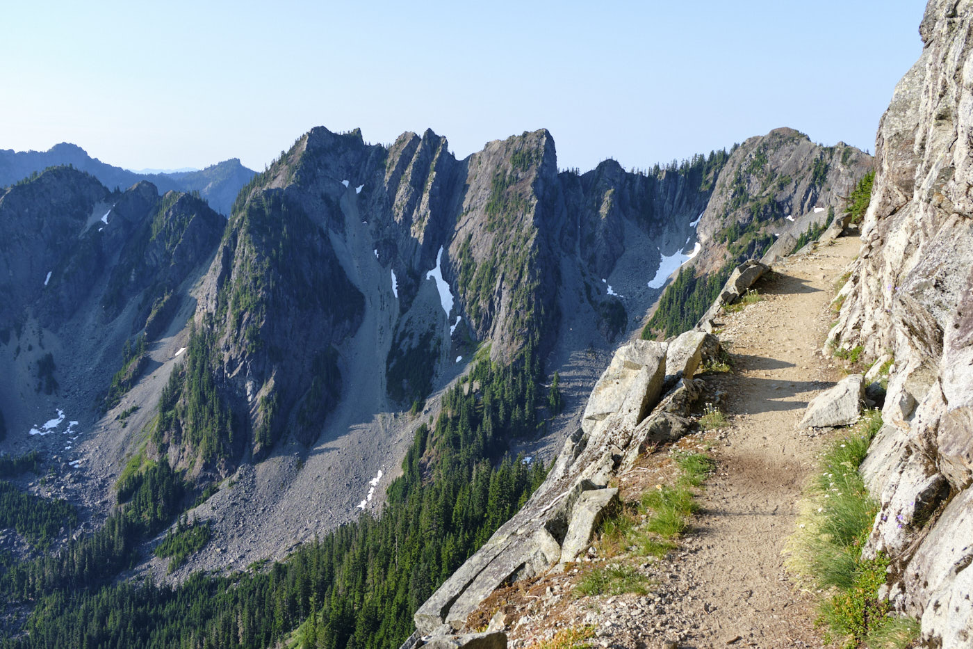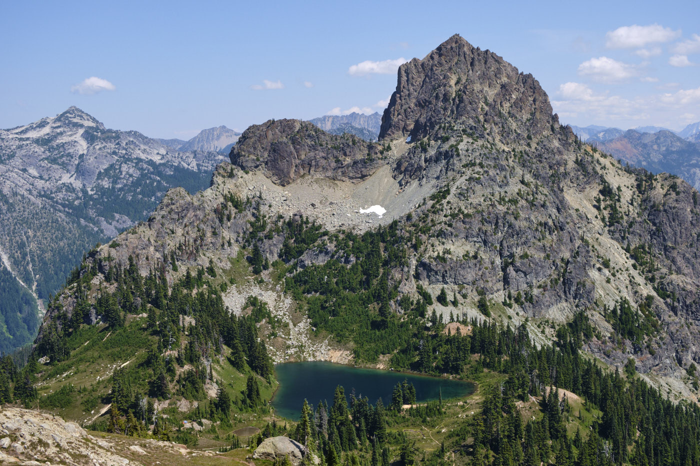 Hiking down Mount Daniel, with Mount Stuart prominent in the background