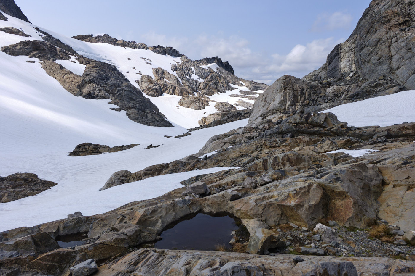 Looking back towards Pea Soup Lake and Dip Top Gap