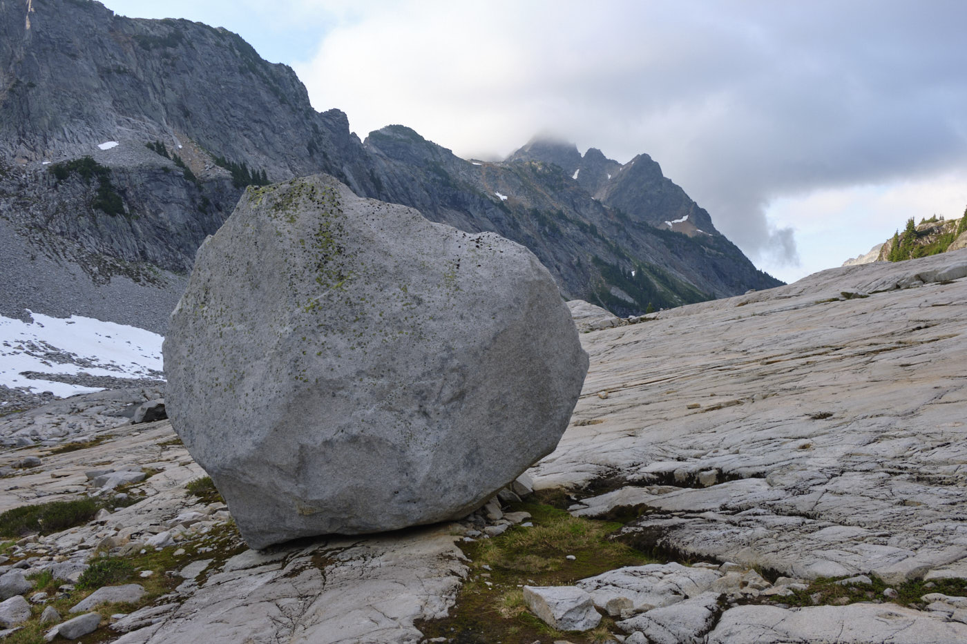 An alpine landscape beneath the Overcoat Glacier