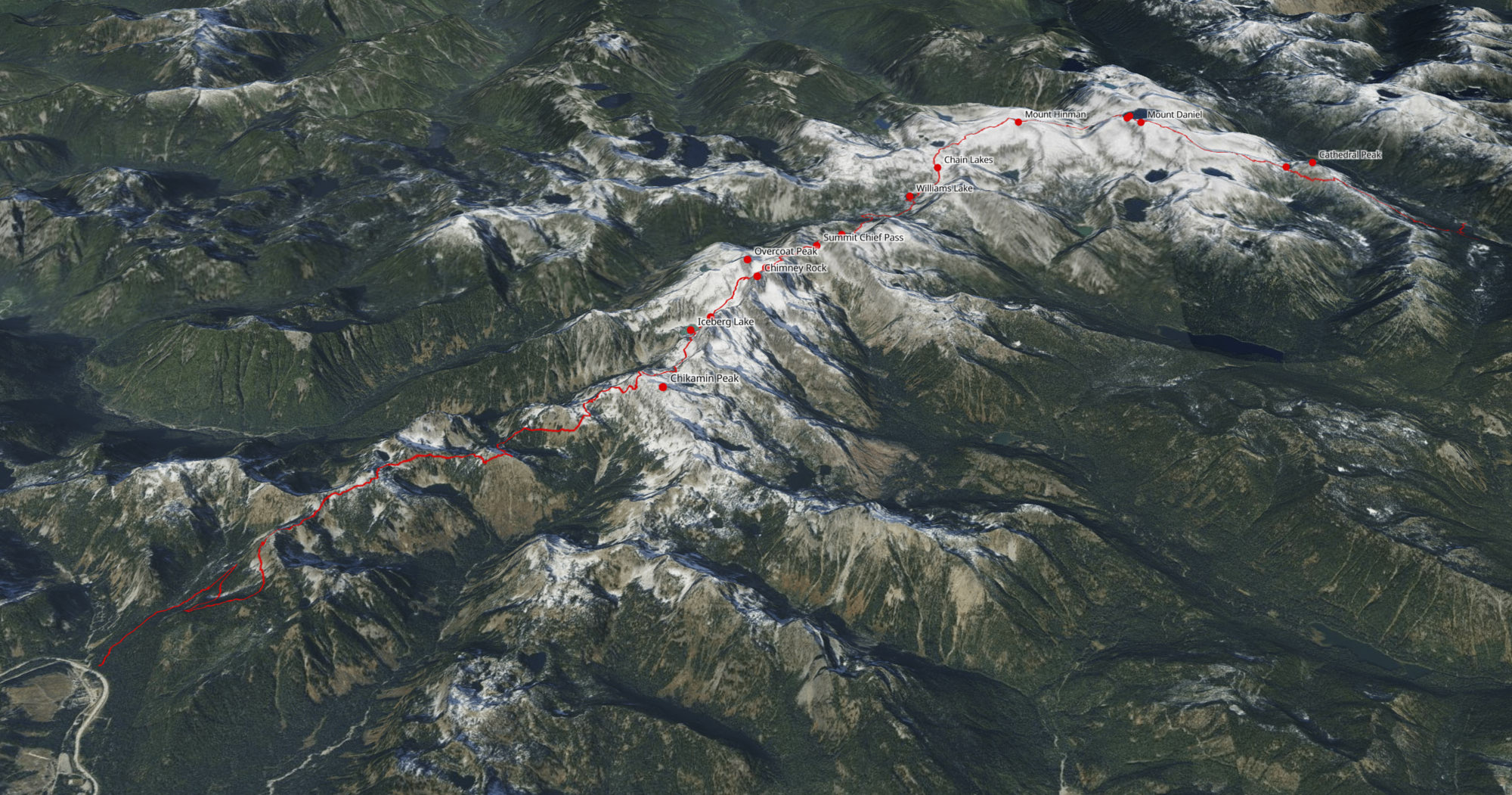 At the end of July, Rio and I spent two days completing the “Alpine Lakes Crest Traverse.” This route follows the crest of remote peaks between Snoqualmie Pass and Stevens Pass and culminates on the summit of Mount Daniel, the highpoint of King County. I recorded 36 miles and 15k feet elevation gain, with 20 miles off trail.